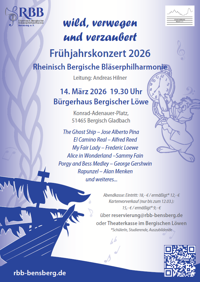 Galoppierende Truppen, ein mysteriöses Schiffswrack, feurige Volksweisen und märchenhafte Geschichten, die einen mitten ins Herz treffen – das Programm des RBB unter der Leitung von Andreas Hilner bietet seinen Konzertgästen wieder ein spektakuläres Hörerlebnis quer durch eine Reihe an Stilrichtungen. Von klassischer Ouvertüre über Musical- und Opernmelodien bis hin zu Filmmusik und beliebt-bekannten Musiktiteln ist für alle etwas dabei. Ein Konzert, das die